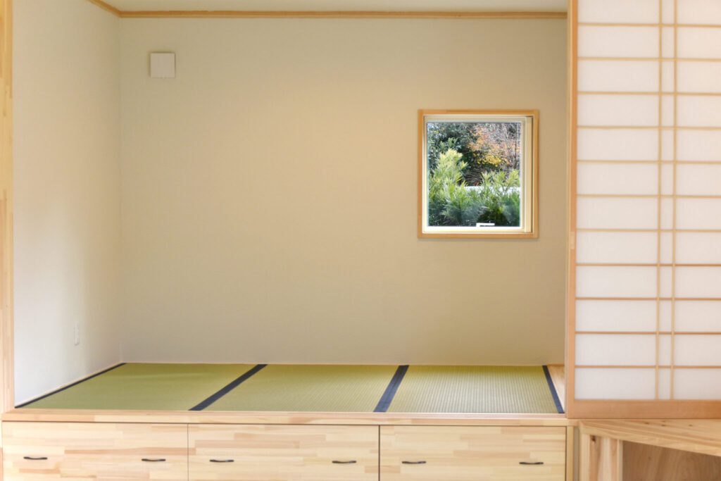 そして、居酒屋のような雰囲気でゆっくり落ち着いて過ごしたいとのご要望を頂いたので、リビングの一角に畳コーナーを。