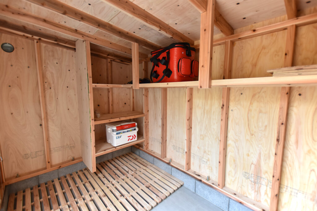 ご主人の趣味が釣りとのことで、その道具をしまう場所をつくってほしいと追加でご依頼もいただきました。お家の雰囲気に合わせた外観を意識し、吟味を重ねた結果、木造の倉庫を採用することになりました。