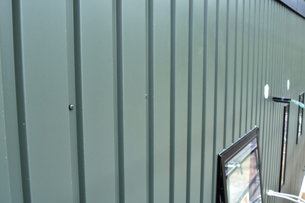 西面と北面はガルバリウム鋼板の深いグリーンで落ち着いた雰囲気に。