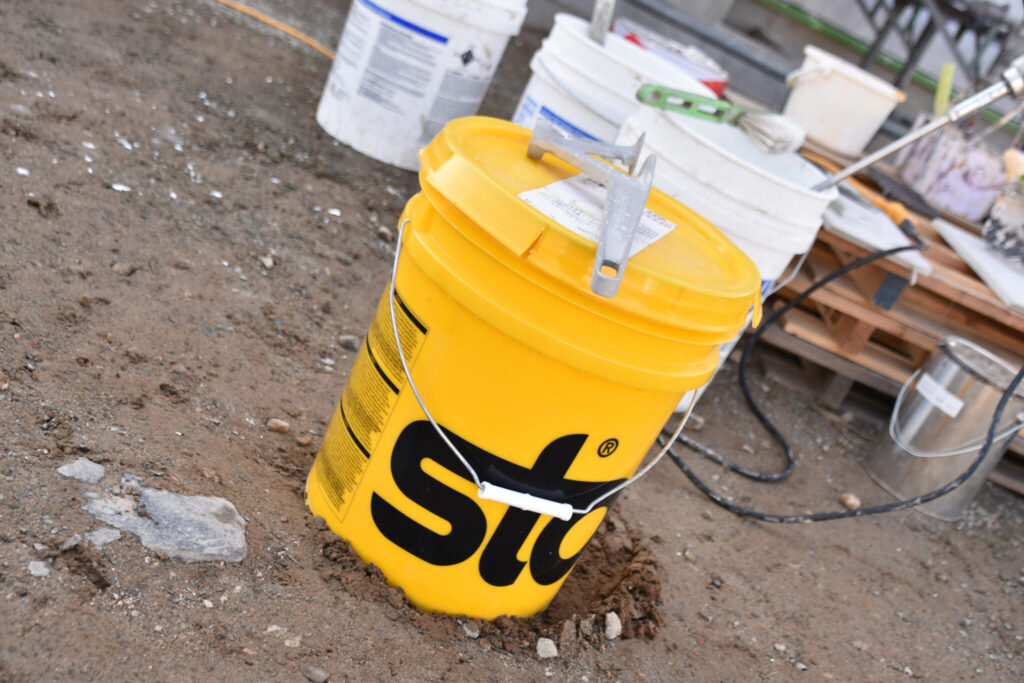 白い塗り壁は、クラック(ひび割れ)が入りにくいSto塗壁工法で施工しました。