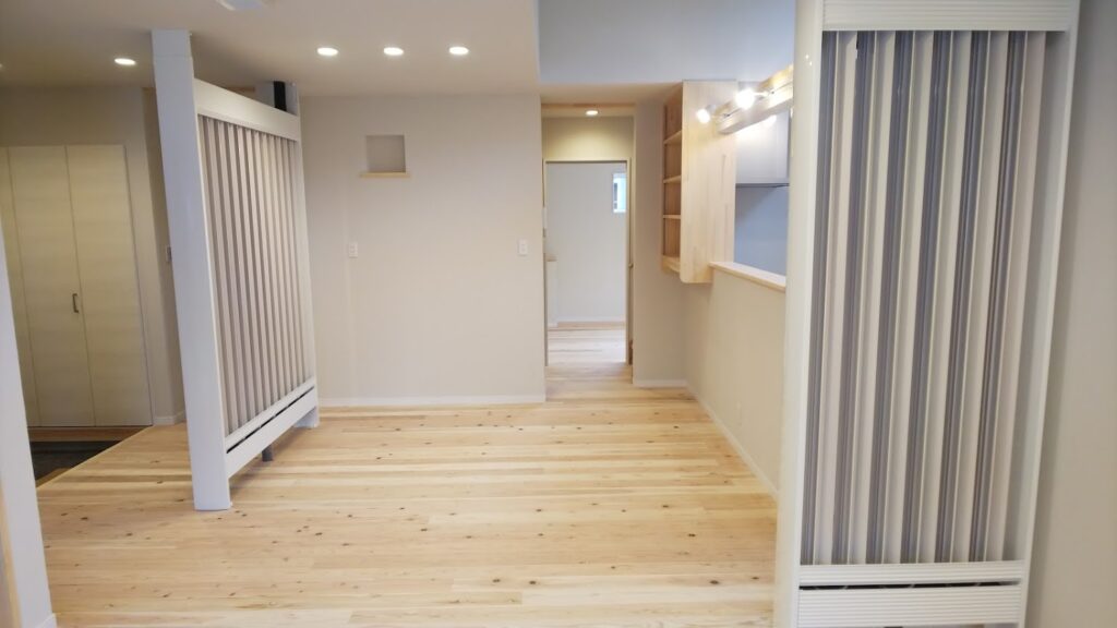 これだけの空間が一続きですと空調が心配になりますが、「F-CON(光冷暖)」は元々全館一体型の空調であるため、屋内のどこにいても夏はしっかり涼しく、冬はほっこり暖かく過ごすことができます。