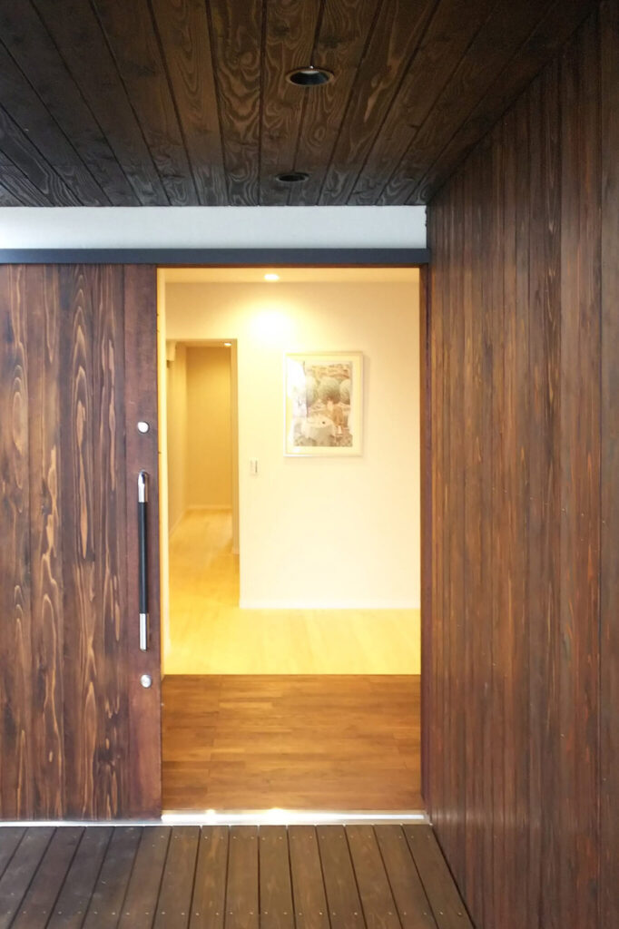 ポーチから玄関ホールまで段差ゼロのバリアフリー仕様になっているので車椅子でもスムーズ。