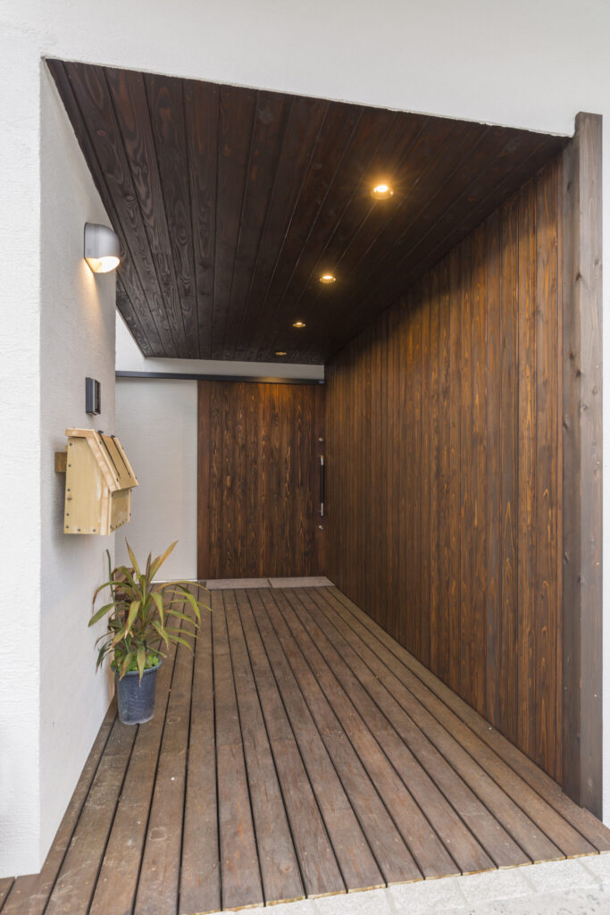 ポーチから玄関ホールまで段差ゼロのバリアフリー仕様になっているので車椅子でもスムーズ。
