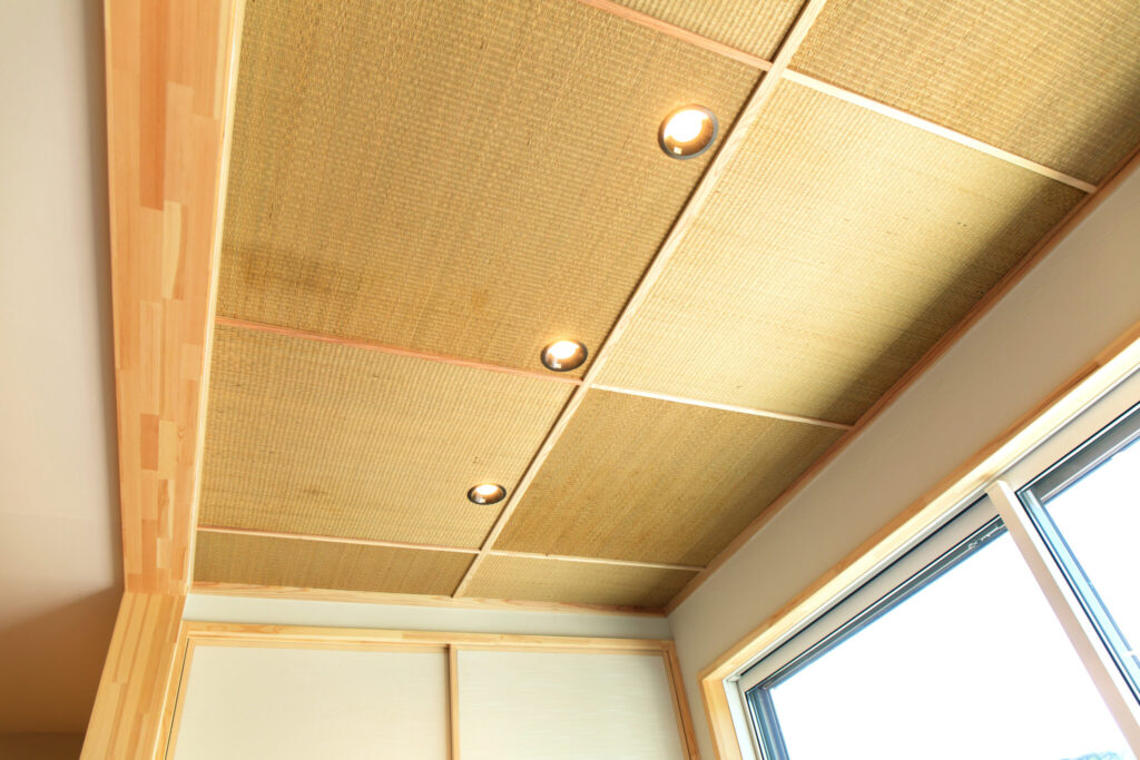 また畳コーナーの天井は、なんと以前のお宅で実際に使用していた畳表。