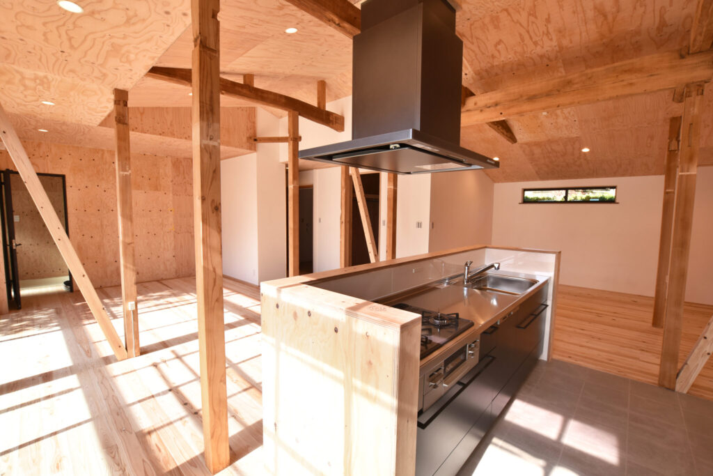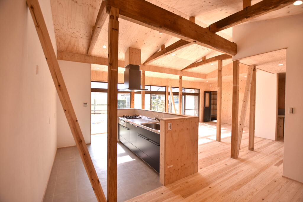 大きな開口部から燦燦と陽が降り注ぐ、気持ちの良いおうちになりました。