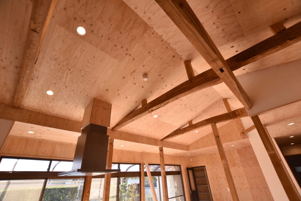 天井を剥がして出てきたうねりのある梁は、そのまま見せる天井に。