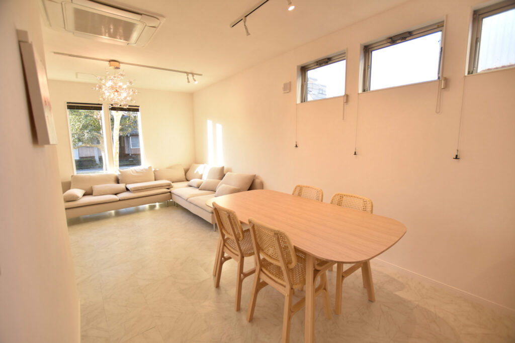 今回こちらのお宅のリノベーションで特徴的なのは、店舗から住宅への用途変更を伴っている点です。一概には言えませんが、店舗はその用途上、少ない柱である程度広い空間を確保する構造になっていることが多いです。柱は建物の強度等に関わる重要な部分なので、リノベーションの際は安易に撤去できず、プランニングや生活動線に大きな影響を及ぼします。普通の住宅とは一味違う広い空間が欲しいときや、間取り変更に自由性が欲しいとき、店舗から住宅にリノベーションするというのも、選択肢の一つとしてアリなのかもしれませんね。