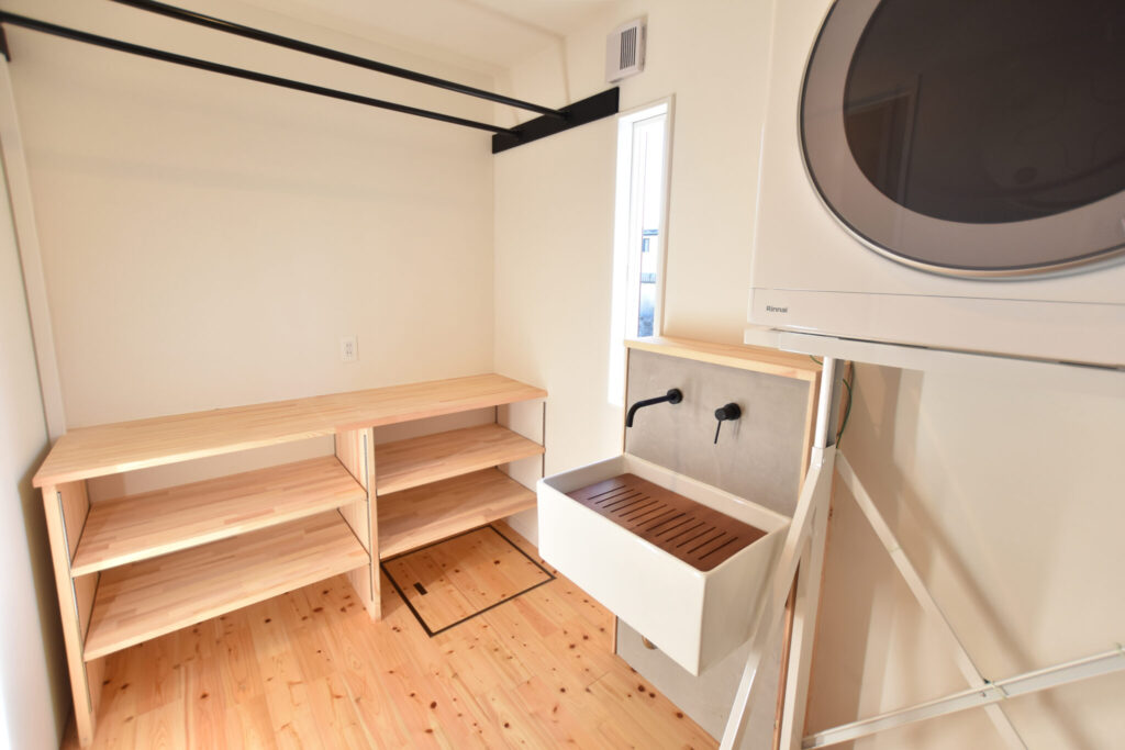 脱衣所にはスロップシンクと物干しスペースを確保。お洗濯まで効率よく、一気に完了させてしまいましょう。