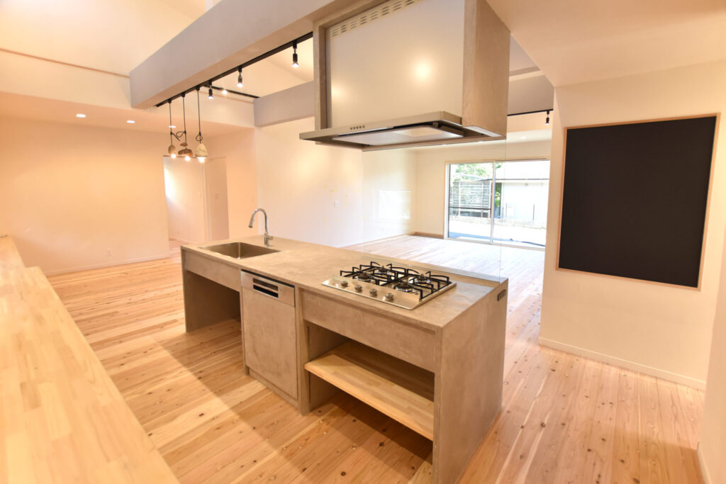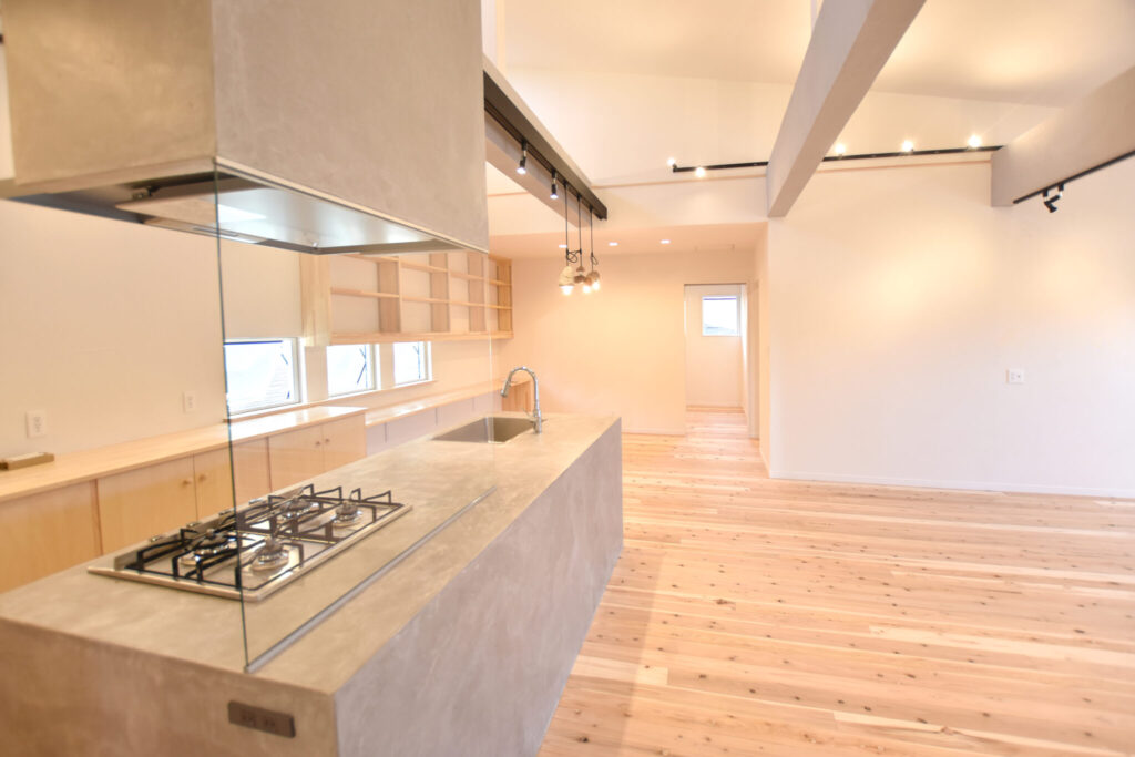 ◆空間を引き締める造作モルタルキッチン