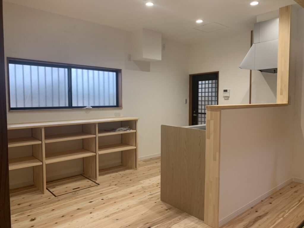 床は杉材を使用しまししたので、木を活かしたリビングの設えと徐々に馴染んで、一体感のあるリビングキッチンになるでしょう。