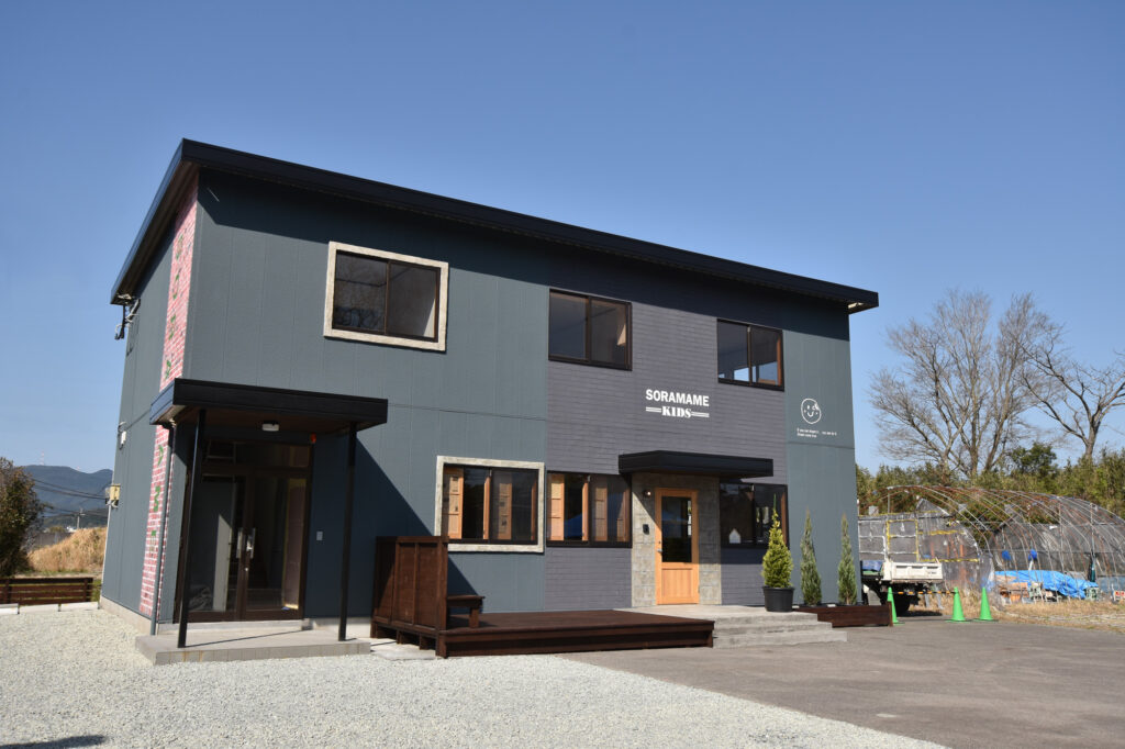 そらまめキッズさまは子どもさんのための施設ではありますが、親御さん同伴で通われることが多いようでした。そこでリノベーションするにあたり、思い切って大人向けのクールな雰囲気の外観にしてみました。