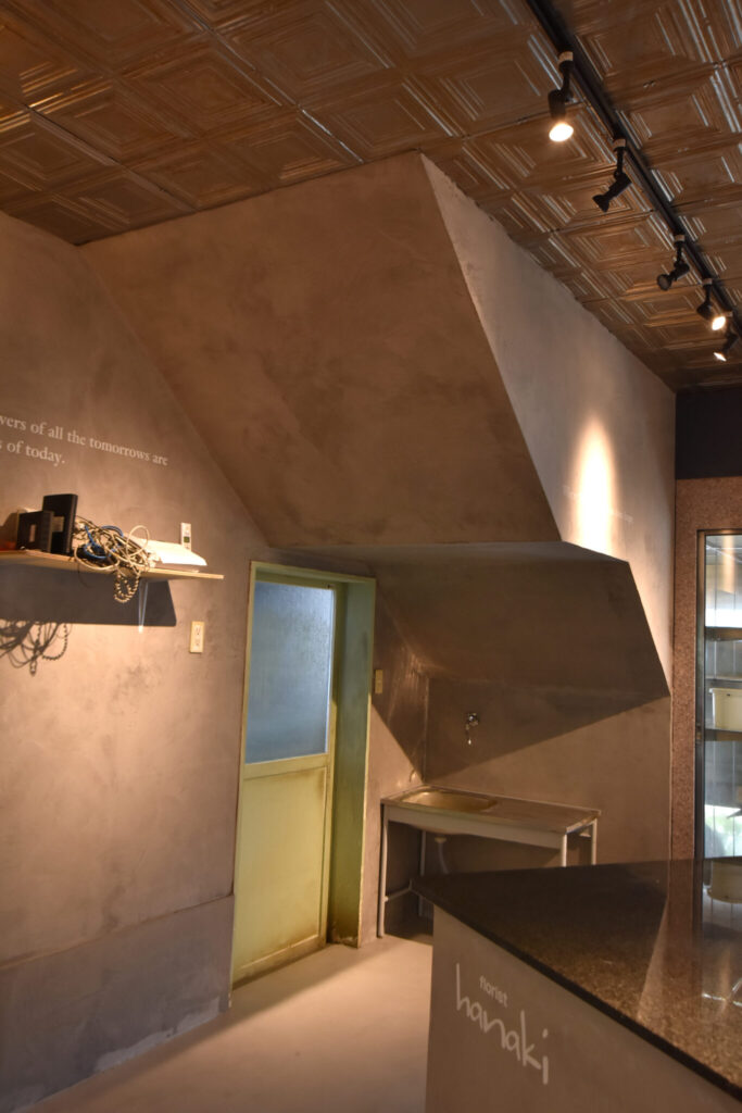 今回花樹さま店舗のリノベーションを施工させていただくにあたり、お客様が大切な方を想って足を運ばれる空間であることと、花樹さまのつくられる花束やアレンジの魅力を如何に引き立てるかをメインにプランニングさせていただきました。