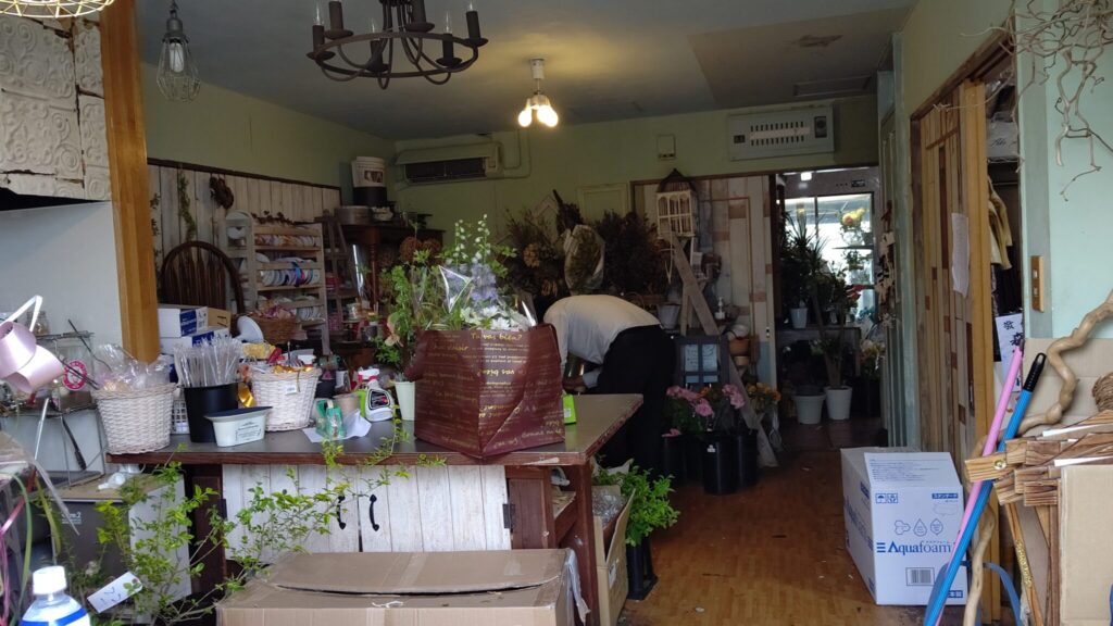 お花を長く美しい状態に保つために室温を下げ、新鮮なお水をふんだんに使用。生花店の店内環境は湿度がとても高い、建物にとっては中々過酷な条件です。
