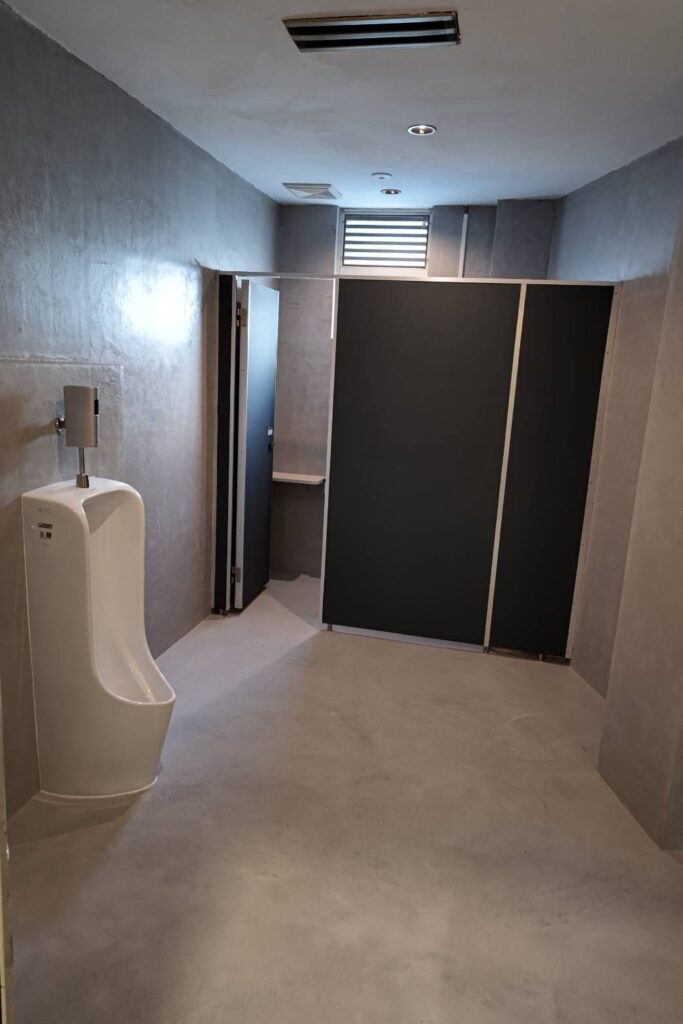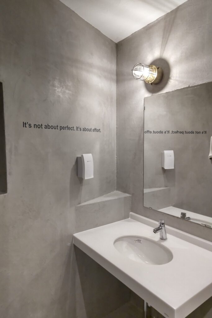 お手洗いはデザインコンクリートの一種MPCによるモルタル仕上げです。