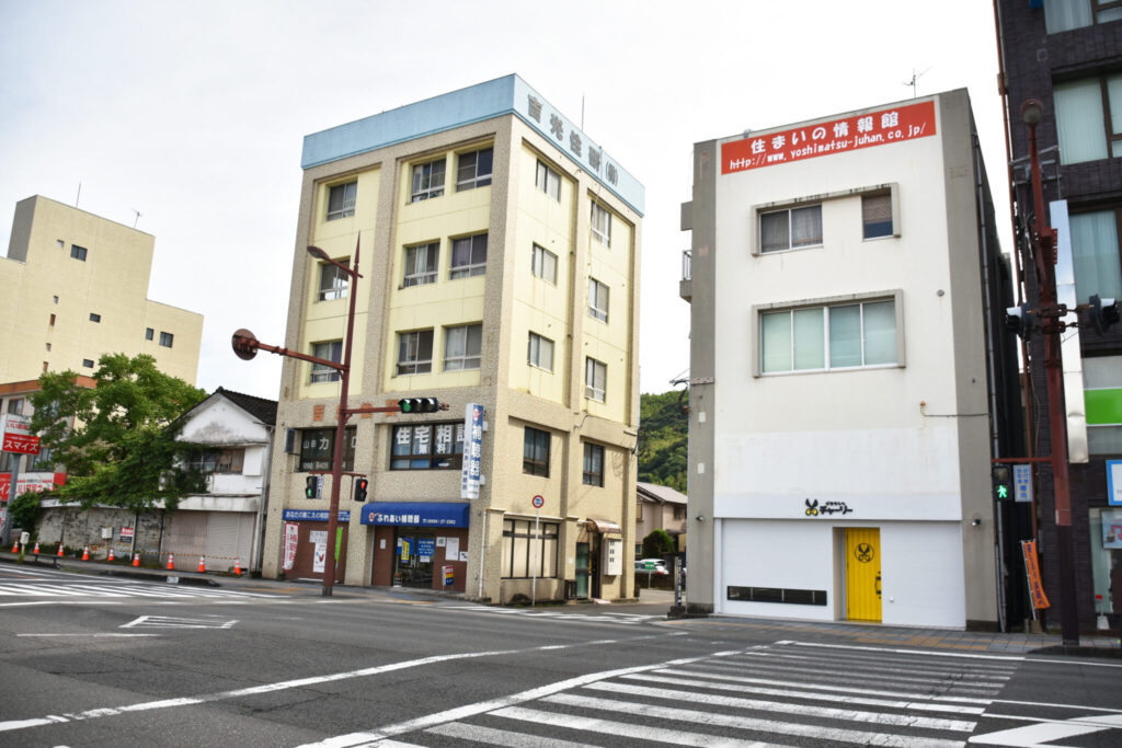 薩摩川内市中心部の国道3号線、大通り沿いの黄色い扉がわかりやすいですね。
