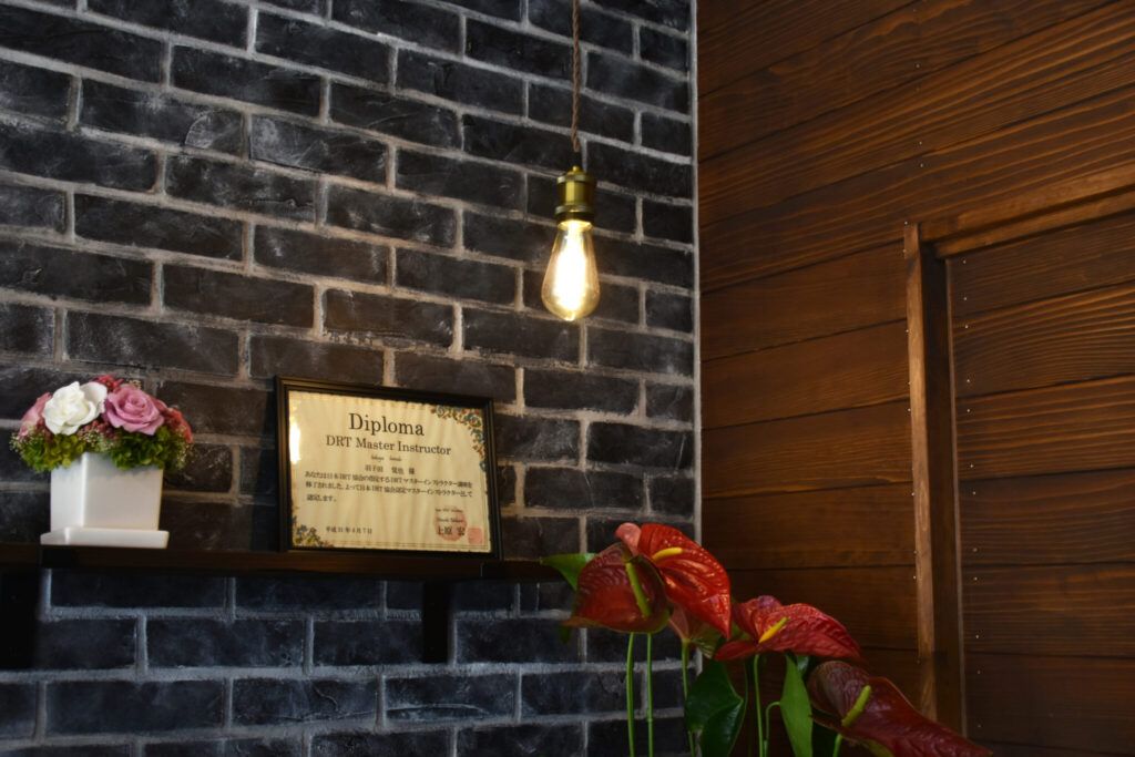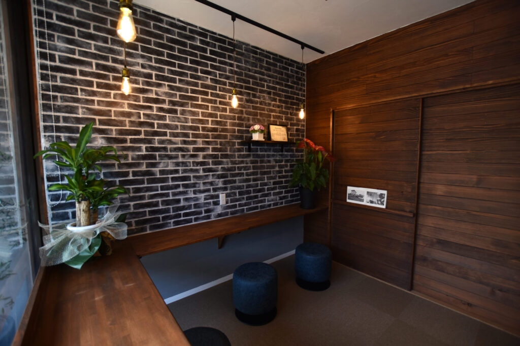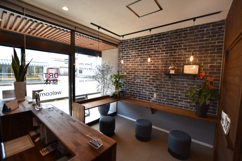 整体院側の内装。身体の不調で来院される方に少しでも寛いでいただくために、カフェのような雰囲気にしました。